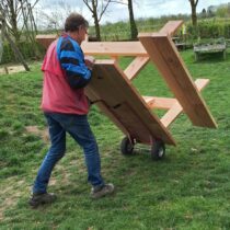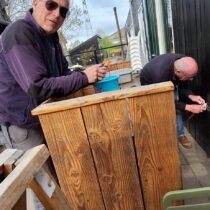 De afgelopen twee weken is er weer flink geklust op De Park. Zo is de kabelbaan gerepareerd, zijn er twee nieuwe parasolvoeten geplaatst, is er bij de kas een bladafscheider gemonteerd, is de kast in de bijenstal gerepareerd en is er veel tijd besteed aan de controle van de elektrische installatie. Er zijn twee nieuwe picknickbanken aangekomen en het waterrad is weer helemaal in orde. Tot slot worden er door de week plannen gemaakt voor de bestrating van een deel van de eerste weide en de vernieuwing van de buitenverblijven van kippen, eenden en varkens.
