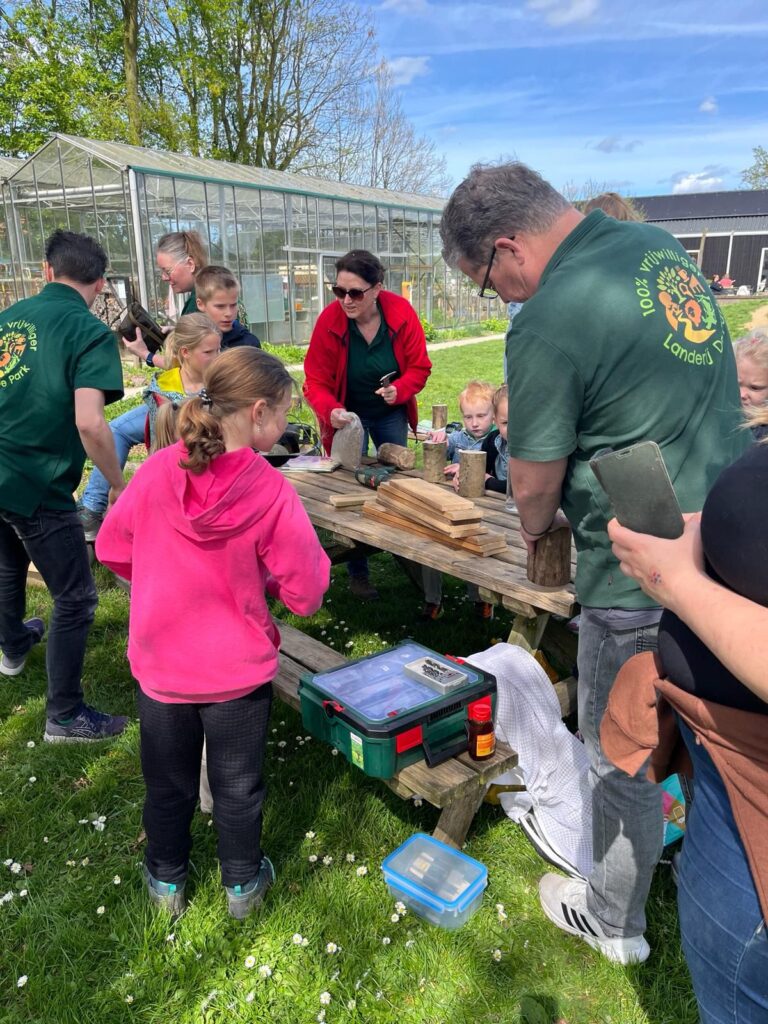 Het bouwen van insectenhotels op zondag 14 april was een zeer geslaagde activiteit. Maar liefst 21 kinderen hebben een hotelletje gemaakt. Een grote bedrijvigheid nabij de bijenstal onder een heerlijk lentezonnetje. Voor veel kinderen was het extra bijzonder omdat ze nog nooit eerder een boormachine hadden vastgehouden. Een mooie activiteit bij de start van de week van de nationale bijentelling.